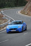 As Sir William Lyons, Jaguar’s founder, once said, “The car is the closest thing we will ever create to something that is alive.” From the moment one enters the cabin, everything is designed to accommodate the human experience. Even starting the XKR-S, a pulsing red light, like a heartbeat, glows from the engine start button. But if this car resembles anything human, it is one angry dude. A departure from traditional Jaguar styling, the XKR-S takes on a menacing look with carbon fiber front end spoiler and rear wing, air intakes on the hood and 20 inch wheels. Showcased in a bold French Racing blue, the car reflects Jaguar’s racing heritage. And while the Ian Callum designed XK has acheived awards for styling elegance, this car is primarily designed for performance, with aerodynamic modifications to achieve a top speed of 186mph.